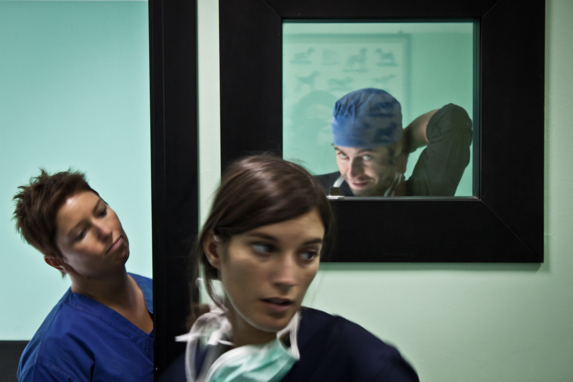 Veterinarians at work with their patients